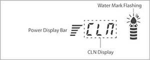 Pendant le nettoyage automatique, le voyant d'eau clignotte. La barre d'affichage de la puissance indique le temps restant, et diminue d'une barre toutes les 3 secondes.