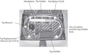 6. Ne pas mettre d'inserts de maintenance (V10-S et VP-10) dans le support d'inserts. Mettez ces types d'inserts dans un sac autoclave et fermez le sac.