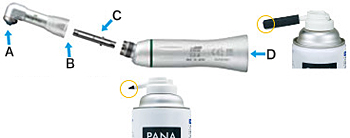 Si vous connectez une pièce-à-main ou un contre-angle juste après sa lubrification sur un micromoteur et que vous le placez sur un support, des problèmes peuvent survenir à cause de la pénétration des excès d'huile à l'intérieur du micromoteur.
