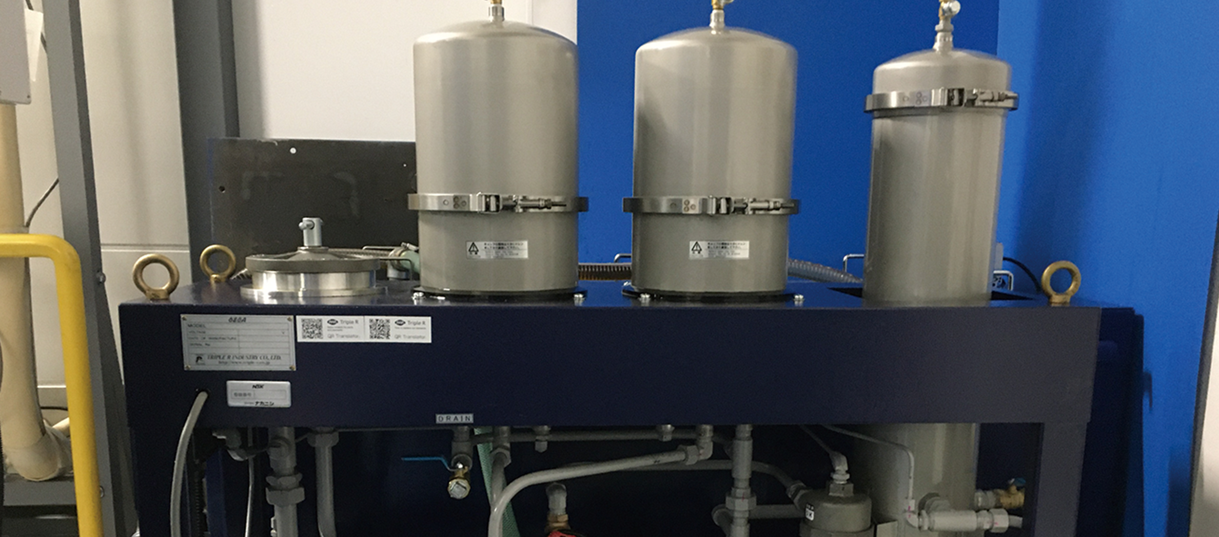 NSK s'efforce de manière proactive de réduire la quantité d'huile usée rejetée. Une grande partie de l'huile usée est de l'huile de coupe utilisée pendant le traitement des métaux, et elle est rejetée par l'usine A1 dédiée à l'usinage des métaux. L'huile de coupe adhérant aux copeaux métalliques produits pendant le traitement et le brouillard d'huile dans l'air à l'intérieur de l'usine sont collectés par un "dépoussiéreur électrique industriel intérieur (collecteur de brouillard d'huile)" installé au plafond. L'huile est ensuite recyclée à travers un système de filtration de précision. La collecte de l'huile en suspension dans l'air à l'aide d'un collecteur de brouillard d'huile réduit l'accumulation d'huile sur les murs, ce qui permet de maintenir un environnement de travail propre.